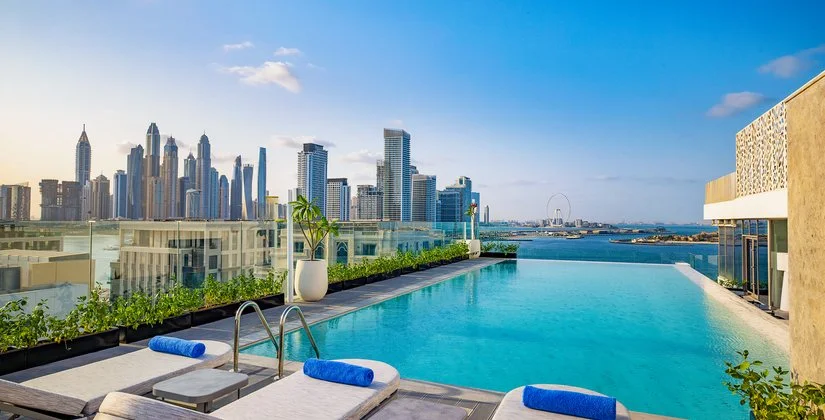 Il Tumbi Hotel Dubai The Palm è una nuova gemma incastonata nell’incredibile cornice di Palm Jumeirah, una delle destinazioni più iconiche e spettacolari al mondo. Qui, lontano dal ritmo frenetico della città, si respira un’atmosfera rilassata, perfetta per chi cerca una pausa di benessere senza rinunciare alla bellezza e alla comodità. La maggior parte delle camere offre una vista scenografica sul mare e sulla skyline di Dubai, con la maestosa ruota panoramica di JBR che si staglia all’orizzonte. Di fronte all’hotel si estende la spiaggia di West Beach, ma la struttura si trova in seconda linea, un dettaglio che si traduce in un ottimo rapporto qualità-prezzo, pur mantenendo una posizione privilegiata. Gli spazi interni sono pensati per il relax: ambienti dal design essenziale e accogliente, una piscina riscaldata sul rooftop con vista mozzafiato e un ristorante panoramico che, al tramonto, si trasforma in una vera e propria cartolina emiratina. Uscendo dall’hotel, ti ritrovi subito sulla vivace passeggiata di West Beach, animata da beach club e ristoranti, mentre alle spalle della struttura si trova la fermata della monorotaia, che percorre tutto il “tronco” della Palma e si collega alla metropolitana, rendendo facile e comodo raggiungere ogni angolo della città, da Dubai Marina ai quartieri più centrali.