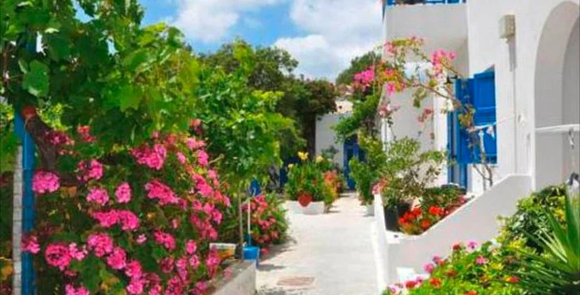 Hotel con piscina ben curato e confortevole, che si sviluppa fin sulla bella spiaggia a mo’ di villaggio all’interno di un rigoglioso giardino di palme e bounganville. La location dunque è davvero ottima per godersi una vacanza balneare nella gettonata località di Aegiali e anche per partire alla scoperta dell’isola, pertanto il noleggio di un mezzo risulterà senza dubbio imprescindibile. Alte e brulle colline spazzate dal Meltemi, che ne disegnano la lunga spina dorsale, lasciano spazio di tanto in tanto a spiagge di incredibile bellezza come la celebre Agia Anna, set cinematografico del film Le Grand Bleu, sulla costa orientale, la scenografica Pavlos o Paradisia Beach all’estremo sud. Mentre attraversate di fatto l’intera isola, circa 35 km di lunghezza, ammirate i tanti mulini disseminati e non dimenticate di deviare al bianchissimo monastero di Panagia Hozoviotissa incastonato nella roccia. La scalinata per raggiungerlo a strapiombo sul mare merita la fatica, che verrà ricompensata dalla pace e dalla quiete che qui si respira. Per rifocillarvi, il suggestivo ed inerpicato paesino di Chora con le sue viuzze lastricate offre tradizionali taverne dove assaggiare formaggi accompagnati da un buon raki. Per chi ancora avesse energie, non scordate il sito archeologico di Minoa e un’escursione in barca agli isolotti disabitati di Gramvoussa e Nikouria. Ad Amorgos ce n’è davvero per tutti i gusti!