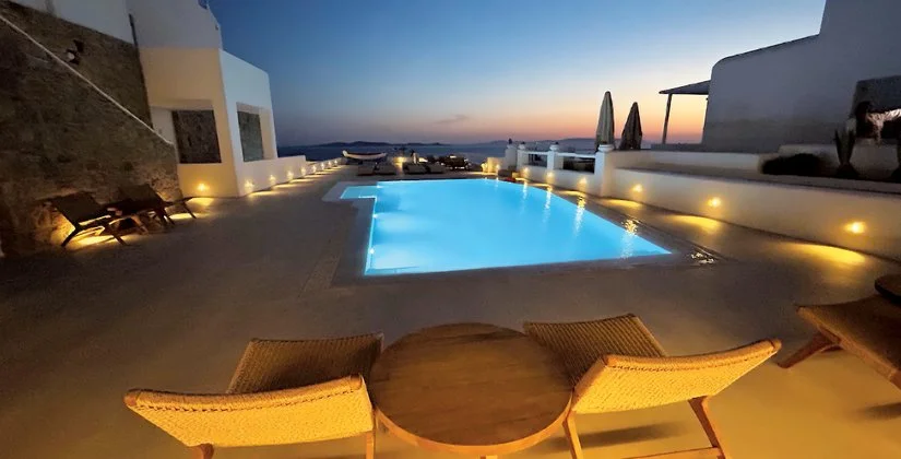 In posizione panoramica sulla baia di Agios Stefanos, questo hotel di piccola dimensione è caratterizzato da tipici colori cicladici, curate aree comuni e un’attenta gestione familiare. La posizione consente di soggiornare in un ambiente tranquillo, lontano dalla vivace e allegra frenesia del centro di Mykonos città, allo stesso tempo raggiungibile in pochi minuti. La splendida baia di Agios Stefanos, che potrai ammirare in tutta la sua bellezza, soprattutto al tramonto, dalla bellissima piscina panoramica appena elegantmente rinnovata o dal balcone della tua camera, è raggiungibile con una breve passeggiata.
