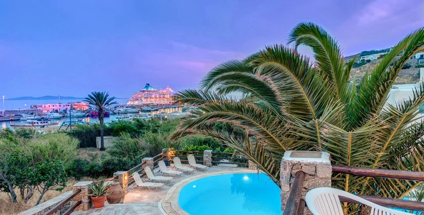 Situata nella zona di Tourlos, proprio di fronte al porto turistico, cornice di suggestivi e colorati tramonti, è una struttura molto graziosa resa accogliente dallo spiccato stile cicladico: ovunque predomina il colore bianco, spezzato solamente da graziosi angolini di muratura grezza e da curati angoli di vegetazione. La struttura mette a disposizione dei propri ospiti anche un delizioso ristorante dove poter assaggiare le prelibatezze della cucina greca e dove viene servita anche la colazione. Tourlos è una piccola spiaggetta non attrezzata che può fare da buon punto d’appoggio per un rapido bagno, ma il consiglio di Eden è di spingervi fino alla spiaggia più ampia e più frequentata di Agios Stefanos, ma soprattutto di arrivare in scooter o con i mezzi pubblici alle straordinarie Paradise e Super Paradise, dove giovani da tutto il mondo si riversano per ballare a perdifiato sotto il calore del sole e poi sotto la luce della luna. Da Tourlos raggiungerete in pochi minuti anche il centro di Mykonos Town, fulcro del divertimento e della trasgressione dell’isola: la scelta di locali notturni davvero glamour è praticamente sterminata. Dirigetevi anche alla piccola Venezia e perdetevi fra le affascinanti viuzze!
