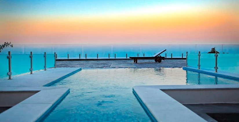 Struttura di dimensioni piuttosto ampie per gli standard dell’isola, con una piacevole area piscina e camere di varie tipologie, dalle più semplici alle più raffinate suite con idromassaggio in grado di soddisfare tutte le tipologie di cliente. Si trova a Firostefani, in posizione leggermente arretrata dallo strapiombo della Caldera ma facilmente raggiungibile: vi basterà, infatti, attraversare la strada e a poche centinaia di metri sarete già affacciati sulla passeggiata pedonale che collega Firostefani con Imerovigli a nord e Thira a sud. Che decidiate di percorrerla in una direzione o nell’altra, resterete comunque a bocca aperta per la magia della Caldera con i suoi paesini bianchissimi arroccati sulla scura parete rocciosa e la sensazione di bellezza e pace che saprà regalarvi. Thira, oltre che bellissima, vanta anche una buona vita serale con ristoranti di tutti i livelli, locali terrazzati e qualche club con musica fino a tardi, mentre a Firostefani Eden suggerisce di non perdere una buona bistecca al The Bone, locale curato con vista sulla costa orientale e ottima scelta di carne (menù sfogliabili su tablet!).