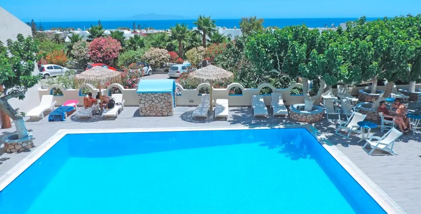 Si tratta di una struttura semplice ma confortevole, conosciuta e frequentata da anni dalla clientela italiana. Punti di forza dell’hotel sono il buon rapporto qualità-prezzo e l’ottima posizione a pochi passi dal centro di Kamari, dove potrete trovare taverne tipiche e gustare le tradizionali specialità del luogo. Per il dopo cena, sperimentate alcuni dei locali più trendy della zona come il beach bar Albatros dove fare le ore piccole ascoltando musica dal vivo. Non dimenticate di visitare il capoluogo Thira, dove al tramonto potrete sorseggiare i migliori aperitivi dell’isola gustandovi il panorama mozzafiato della Caldera.