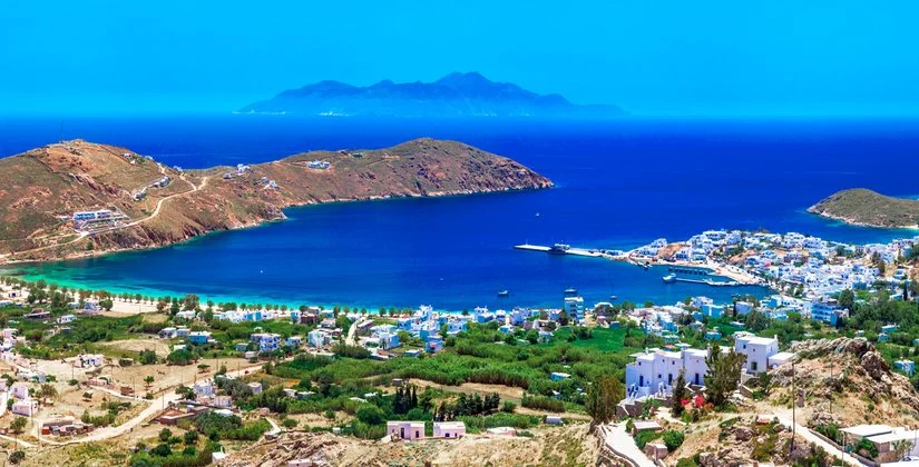 Livadi, a 20 m dalla spiaggia (subito oltre la strada), 450 dal centro e dal porto.