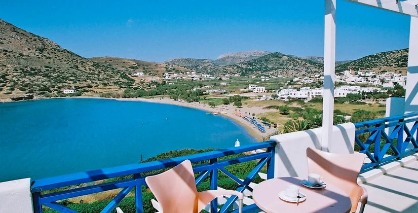 Pur nella sua semplicità rispetto alla categoria, si tratta del miglior hotel dell’isola, situato sulla spiaggia più bella. L’atmosfera che vi si respira è informale e piacevole. Suoi punti di forza sono la comodità alla lunga spiaggia di sabbia dorata, la piscina con splendida vista panoramica e la piacevole taverna greca a bordo piscina. Si trova anche a due passi dal centro della vivace Galissas, dove ristorantini, taverne e negozietti saranno ottima compagnia per piacevoli serate. In pochi minuti d’auto potrete raggiungere anche la vicina Ermoupoli, capoluogo amministrativo e culturale dell’isola di Syros e di tutte le Cicladi. Questa cittadina di fortissima impronta italiana (risalente ai tempi della dominazione fascista) stupisce con l’ambiente raffinato ed elegante, con i suoi negozi chic e con i ristoranti di altissima qualità. Sulla spiaggia di Galissas sventola la Bandiera Blu!
