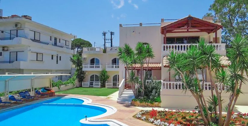 Piccolo complesso curato e ben tenuto, fornito di piscina nonostante si trovi a due passi dalla spiaggia di Agia Marina, insignita di Bandiera Blu.