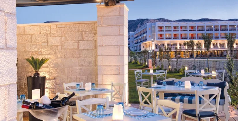 Dall’aspetto molto caratteristico che unisce a uno stile postmoderno elementi di architettura greca, è una buona soluzione per chi è attento al prezzo ma allo stesso tempo non vuole rinunciare alle comodità. Si tratta di una proposta un po’ più semplice rispetto alla sua categoria ufficiale, ma con servizi in grado di soddisfare ogni esigenza. Interessante, infine, il comodo e conveniente trattamento di tutto incluso per i più pigri. La posizione è ottima rispetto al mare e al centro di Hersonissos, dove non potete mancare di trascorrere un po’ di tempo tra compere in qualche negozietto e frizzanti serate nei tanti locali all’aperto, dove bere un cocktail al chiaro di luna. Quando sarete stanchi della movida, per ritirarvi un po’ fuori dal caos Eden consiglia di esplorare la vecchia Hersonissos proprio sulla collina alle spalle del centro moderno. Raggiungibile in 5 minuti di auto o scooter, si divide in tre piccolissimi centri, Piskopiano, Koutoulufari e la vera Old Hersonissos.