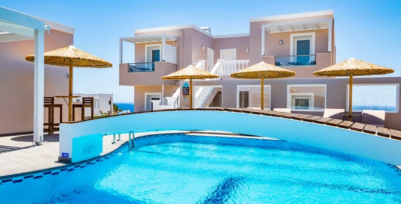 Struttura di nuova costruzione situata ad Amoopi, la località balneare di Karpathos più frequentata e apprezzata dalla clientela italiana. Dispone di appartamenti bilocali moderni e ben arredati con colori caldi e accoglienti, affacciati sulla bella piscina. Si tratta della soluzione ideale per chi cerca una sistemazione indipendente e funzionale senza rinunciare al comfort e ad un ambiente raffinato piacevole. La baia più vicina si trova a circa 200 metri e anche le altre spiagge di Amoopi sono facilmente raggiungibili in pochi minuti, mentre a chi vuole esplorare l’isola Eden suggerisce senza dubbio lo speciale noleggio auto a tariffe vantaggiose.