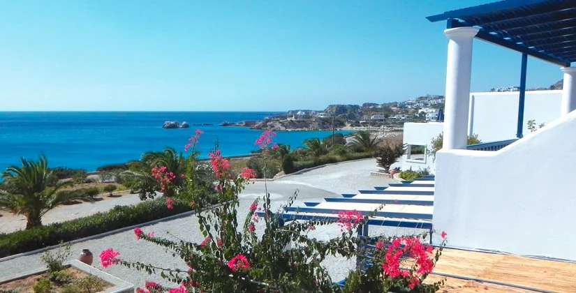 Piccolo complesso costruito in tipico stile isolano suddiviso in 2 proprietà della stessa famiglia (Ardani Bay Matina e Ardani Bay Panti), con gli stessi identici servizi, affacciato sul tratto di costa rocciosa che si snoda subito oltre la strada, e dunque con splendida vista sull’Egeo. Dispone di unità funzionali, semplici ma ben tenute e gestite con passione dai gentilissimi proprietari. La posizione, defilata dal piccolo centro turistico, è perfetta per un momento di pace e relax ascoltando la notte solo la dolce risacca del mare e facendovi cullare nel riposo dopo lunghe giornate trascorse in spiaggia. La più vicina, a poco più di 200 metri, è Little Amoopi che, come suggerisce il nome, è la sorellina più piccola di Big Amoopi. Entrambe sono sabbiose e costellate di taverne e beach bar, ma ciò che le rende alcune tra le baie più belle dell’isola sono i colori cristallini, con trasparenze e sfumature di azzurro da far invidia a mete d’oltreoceano. Non sono però le uniche, poiché a Karpathos non mancano di certo le spiagge incantevoli. Consigliamo pertanto ai più dinamici il noleggio di un’auto o di uno scooter per poter esplorare quelle più incontaminate o suggestive, tra cui Achata, Lefkos, Kyra Panagia e Apella, solo per citarne alcune.