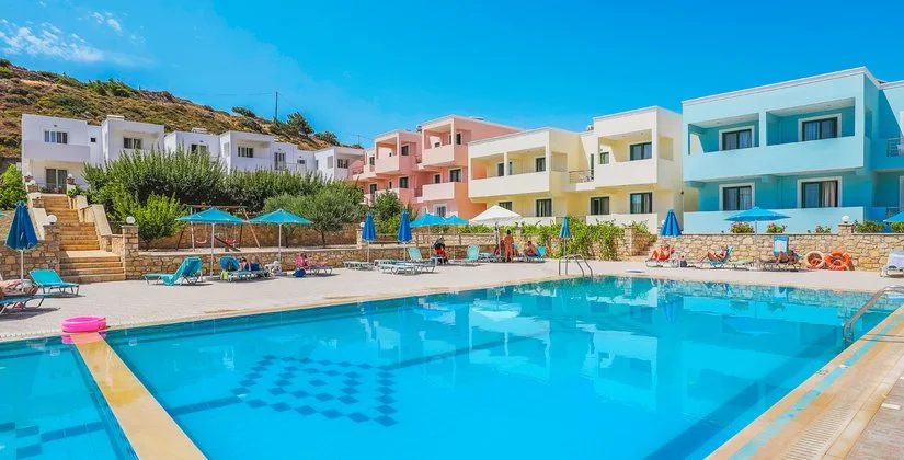 Graziosissimo complesso situato in posizione strategica, a soli 200 metri dalla spiaggia di sabbia e a 1 chilometro da Pigadia. Le sistemazioni sono piacevoli e ben arredate e si sviluppano attorno alla bella e ampia area piscina, che offre un angolo di pace e tranquillità anche in alta stagione. La tranquilla e modesta vita notturna di Karpathos, tra le isole greche più autentiche e profondamente legata alle tradizioni, si svolge tutta sul lungomare proprio di Pigadia, raggiungibile con una piacevole passeggiata. Il susseguirsi del vociare dei turisti, dei deliziosi profumini di piatti fatti in casa provenienti dalle taverne e dei brindisi nei barettini affacciati sul porticciolo rendono le serate estive un vero e proprio momento conviviale, immergendosi nella genuinità e nell’accoglienza del popolo greco.
