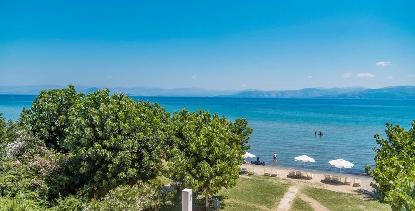 Kavos, direttamente sul mare, a 1 km dal centro e dalla spiaggia, 45 dall’aeroporto e da Corfù città. Fermata bus appena fuori l’hotel.