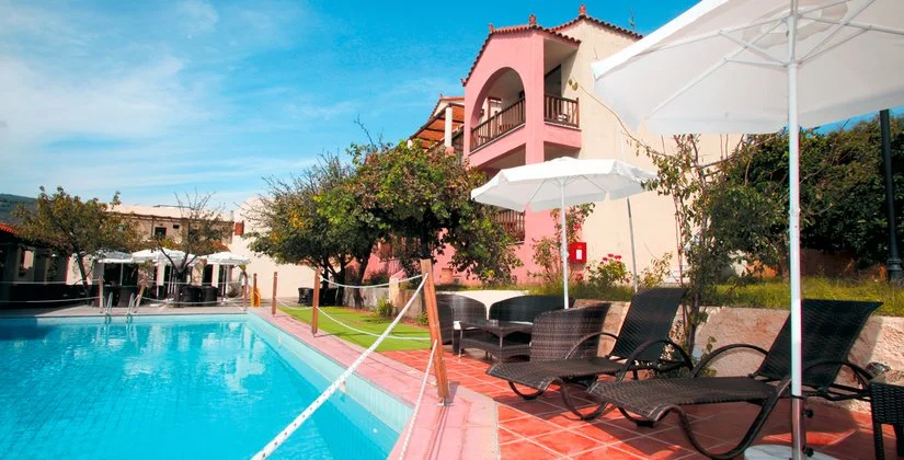 Struttura recentemente rinnovata, con palazzine immerse in un curato e spazioso giardino con vialetti abbelliti da alberi e fiori che circondano il complesso. Dispone di ampia piscina e varie tipologie di sistemazioni in grado di ospitare fino a 4 adulti. Ottima anche la location, in un’area verde appena defilata dalle strette vie di Skopelos Città e dunque ideale per chi ama gli spazi più ariosi e desidera assaporare la quiete e la pace di quest’isola, restando comunque a distanza di pochi minuti a piedi dal centro.
