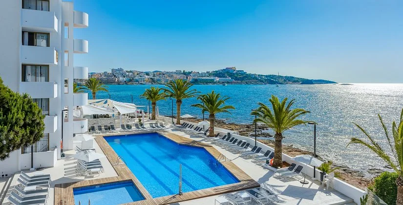 a 350 m dalla spiaggia di Figueretas e dal principio di Playa d’en Bossa, entrambe in parte libere e in parte attrezzate con ombrelloni e lettini a pagamento (teli mare disponibili in hotel).